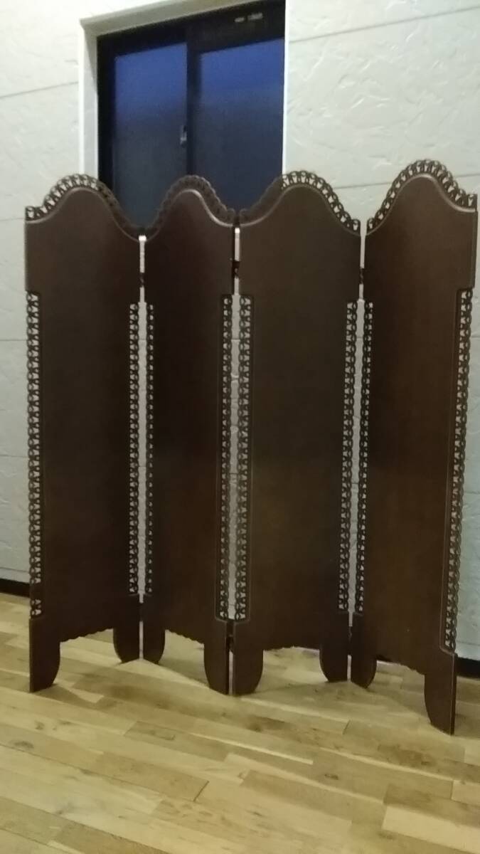 > ☆r☆【木工工芸 パーテーション】衝立 間仕切り 目隠し エスニック 彫刻 4連 折りたたみ/シンプル モダン インテリア☆