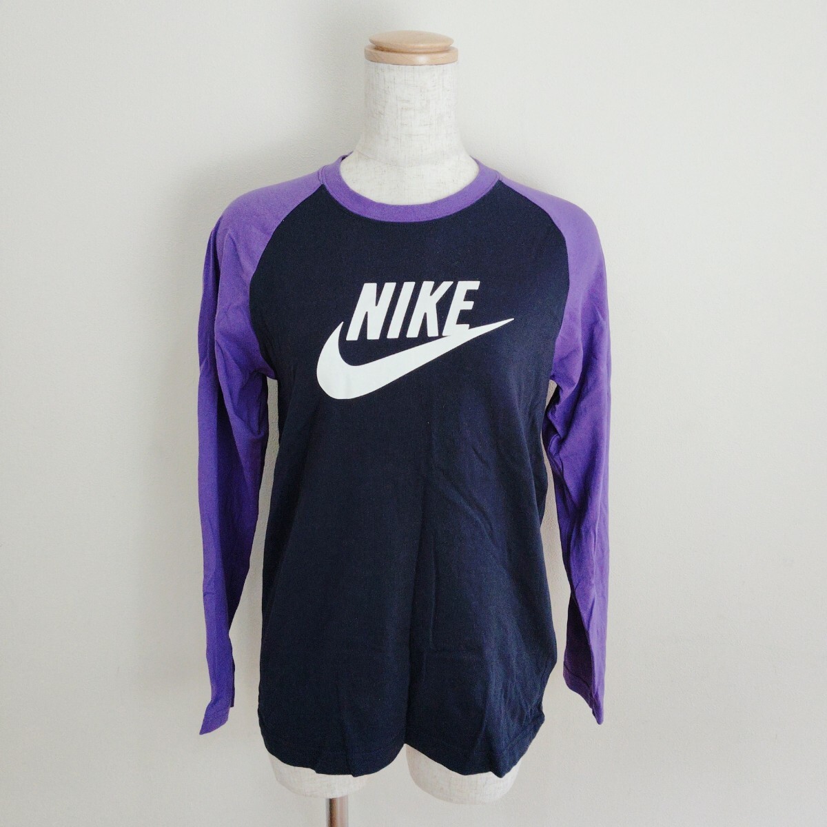- 0717/L/NIKE レディース 長袖 Tシャツ ロンT ラグラン カットソー プリント パープル 黒