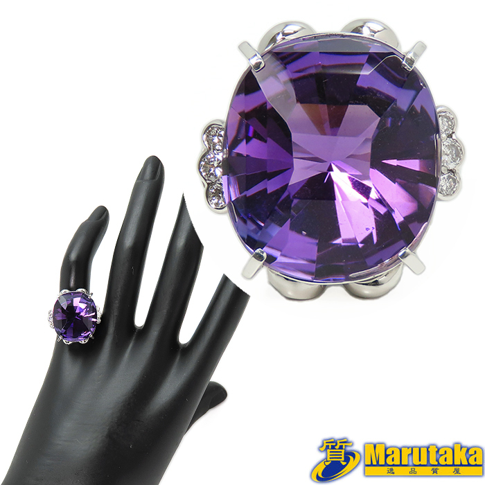 > 【18.34ct 大粒アメシスト リング】8号 鑑別書付 ダイヤモンド Pt900 プラチナ 指輪 大振り 可愛い 大きい アメジスト 中古 24k101-1