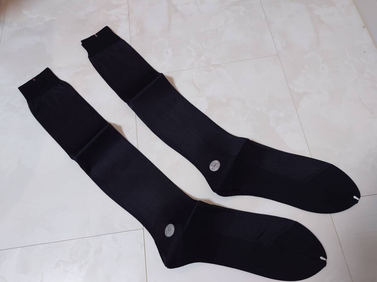 - ああ ナイロン ハイソックス 2足 ハイゲージ 光沢ブラック 黒 シースルーストッキング 高級靴下