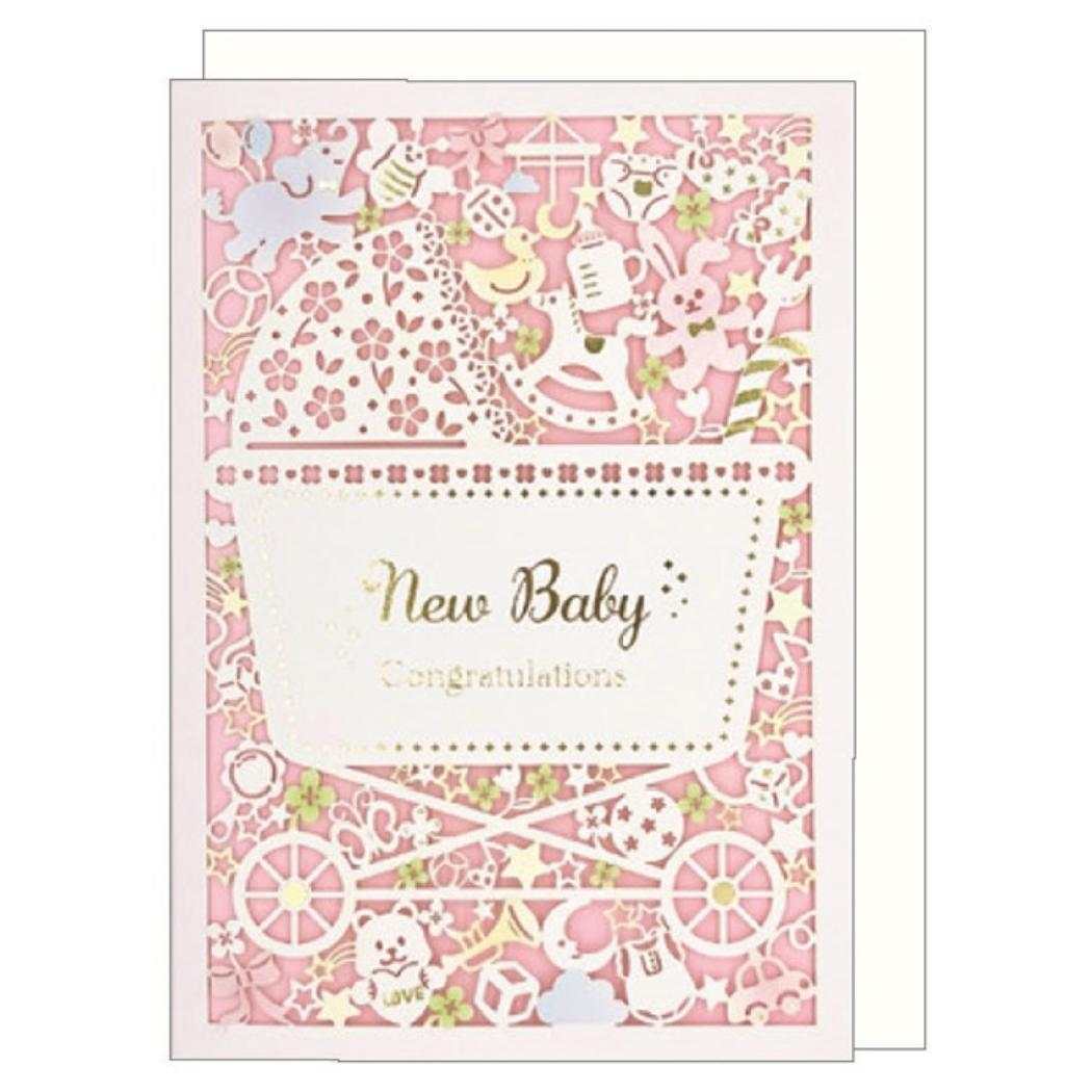 - グリーティングカード 出産グリーティングカード ピンク クローズピン メッセージカード 出産 お祝い グッズ