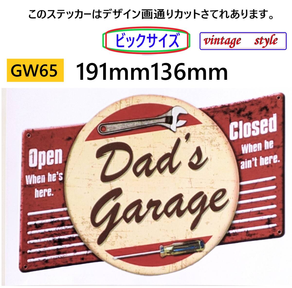 > BIG!!サイズ GW65-02 特価 ヴィンテージスタイル DAD’S GARAGE オヤジ 車イジリ レトロステッカー ガレージ バイク オイル 工具箱 車