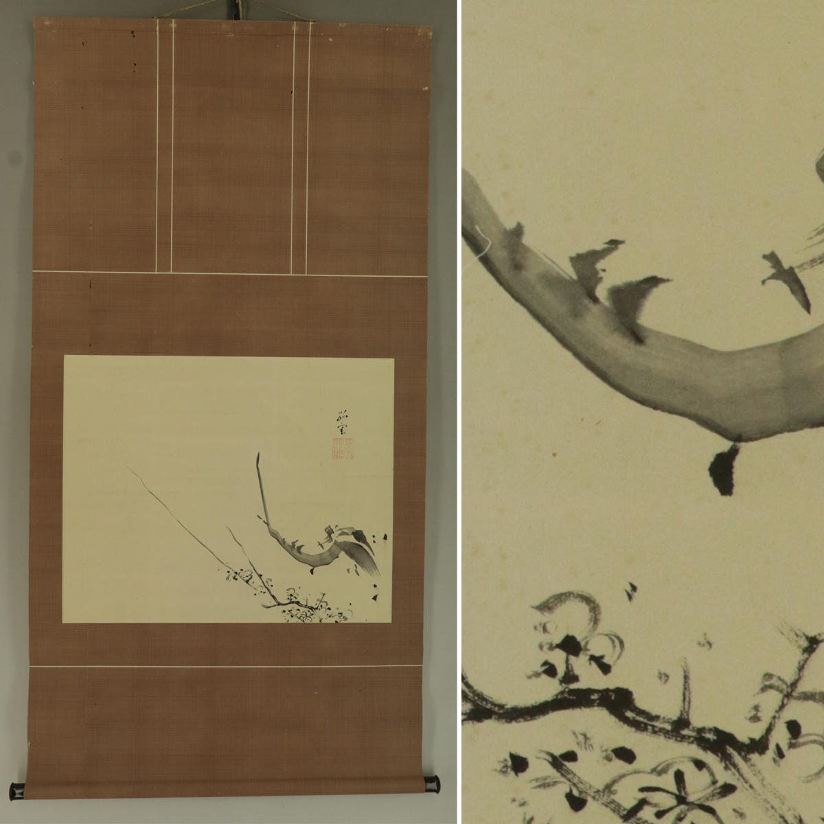 - 【肉筆】孤雲銘【梅之図】◆紙本◆合箱◆掛軸 s06062a