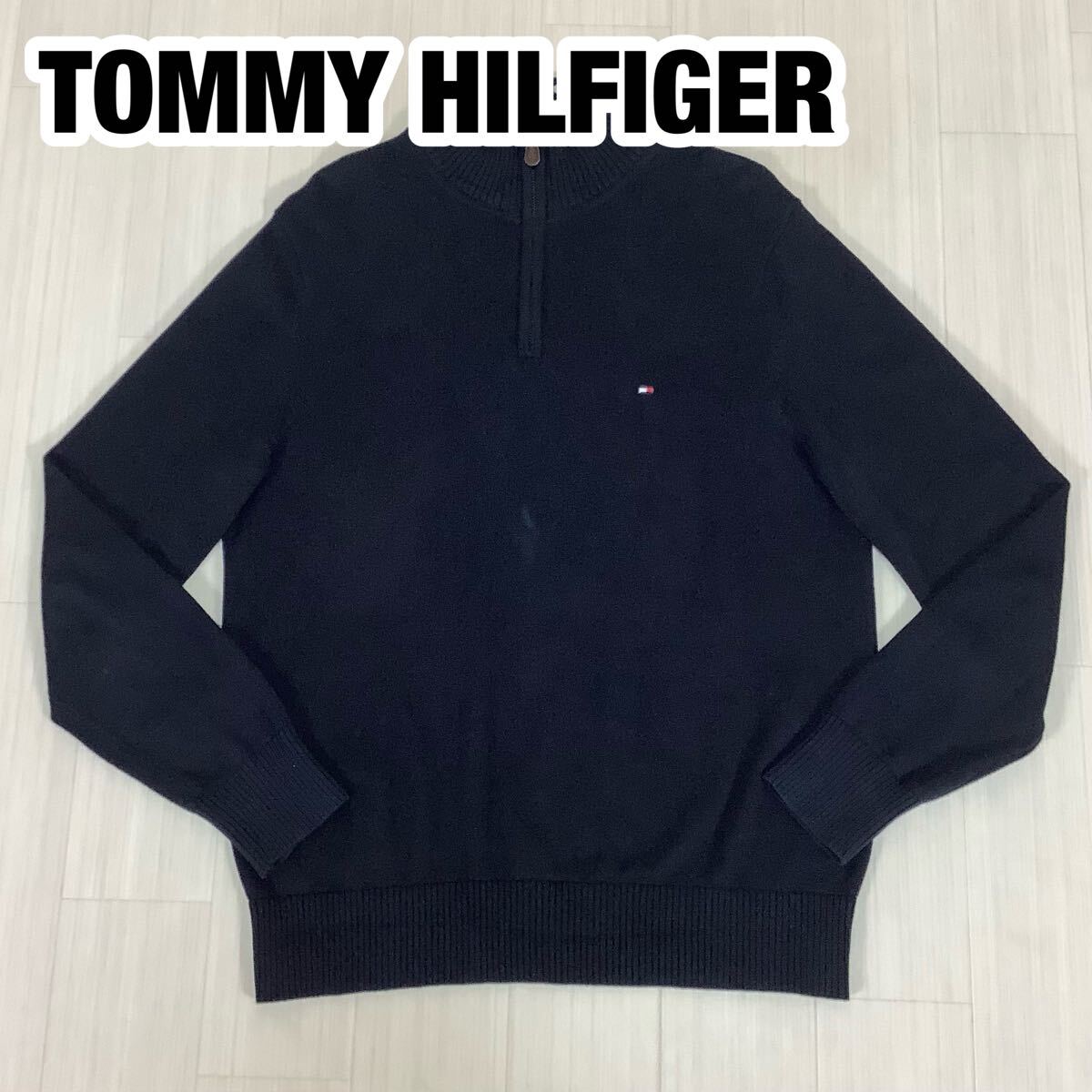 > TOMMY HILFIGER トミーヒルフィガー ハーフジップニット コットンニット セーター M ブラック 黒 刺繍ロゴ