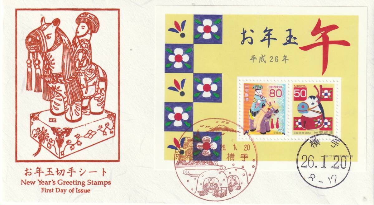 - FDC 2014年 お年玉小型シート うま 80円50円 鳴海