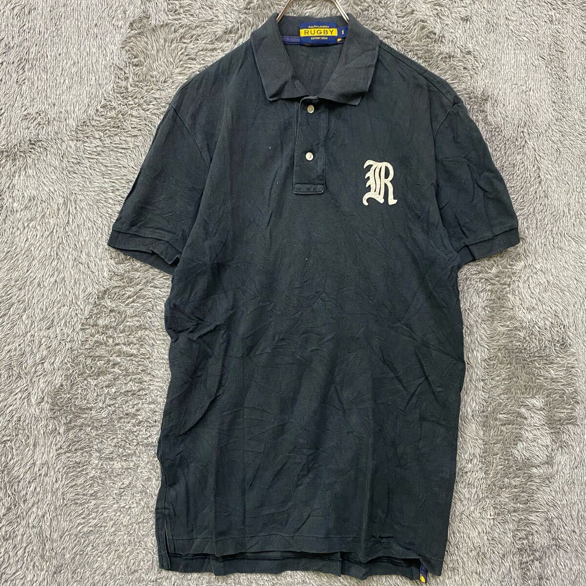 - RALPH LAUREN RUGBY ラルフローレンラグビー 半袖ポロシャツ 半袖シャツ 鹿の子 サイズS ブラック 黒 メンズ トップス 最落なし (A2)