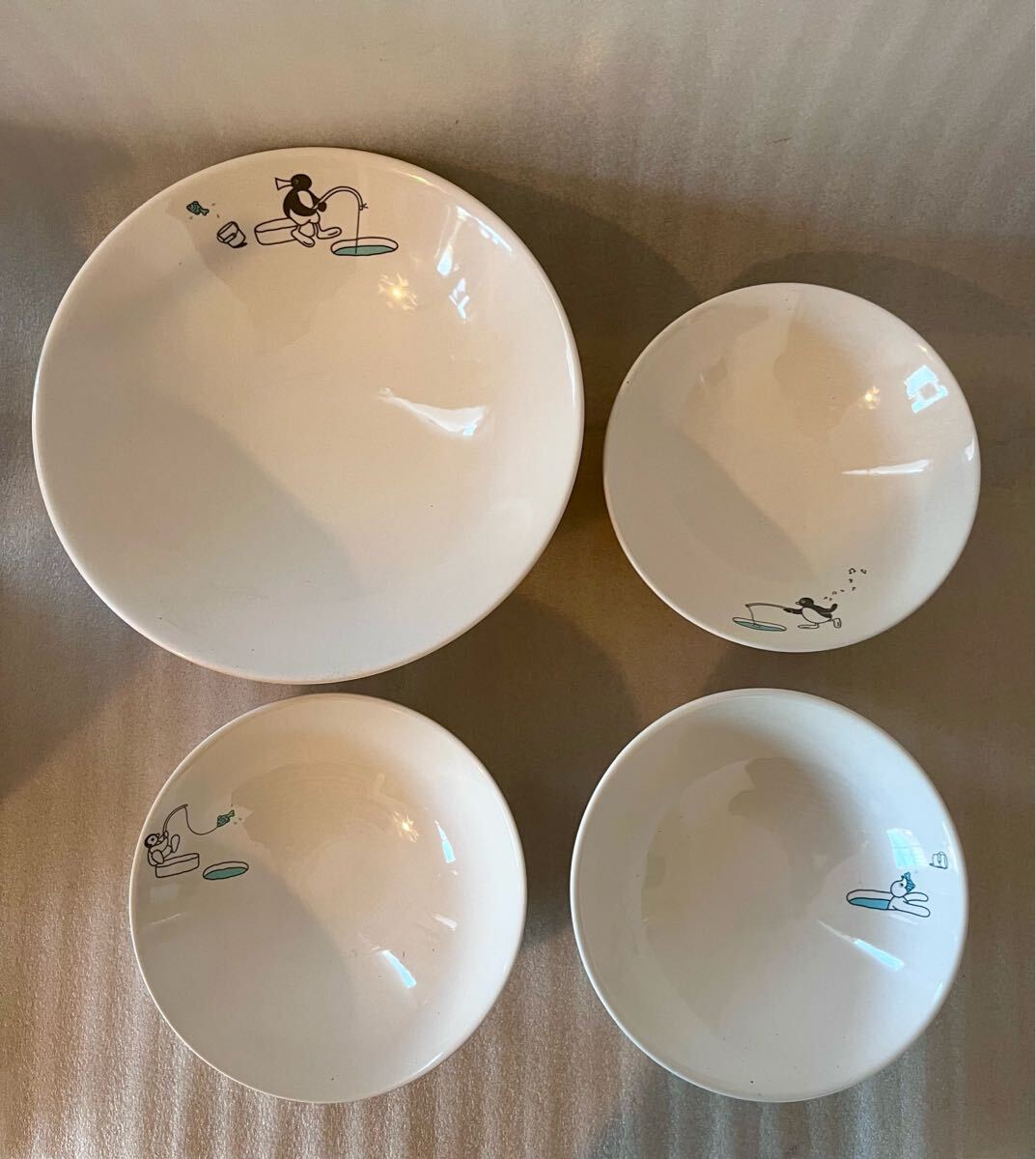 - 未使用 新品 ミスタードーナツ PINGU ピングー 4点セット 食器 ミスド 箱入り 2006 サラダボウル 陶器 小鉢