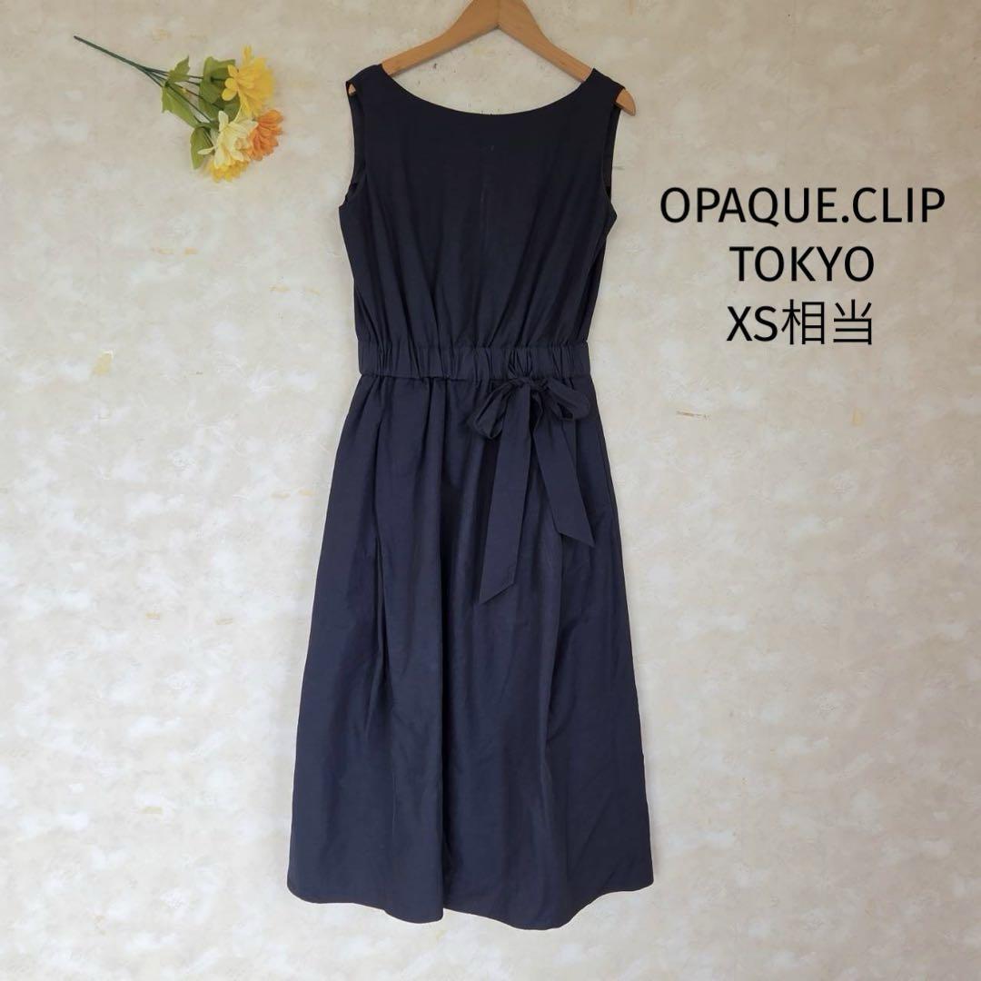 - オペークドットクリップ ロングワンピース【XS相当】ノースリーブ 紺 夏