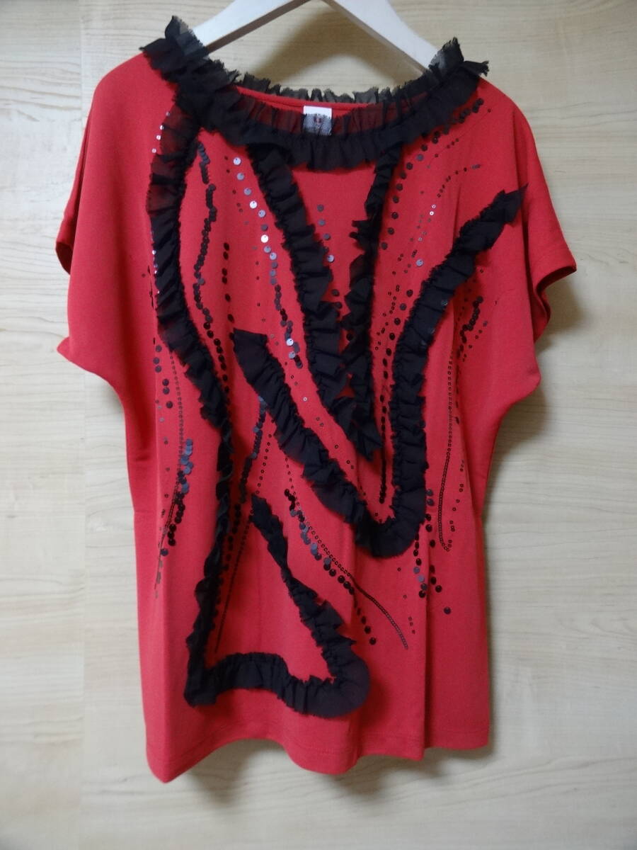 - U by ungaro フレンチスリーブ カットソー サイズ40 R8464 赤スパンコール 黒レース ユーバイウンガロ