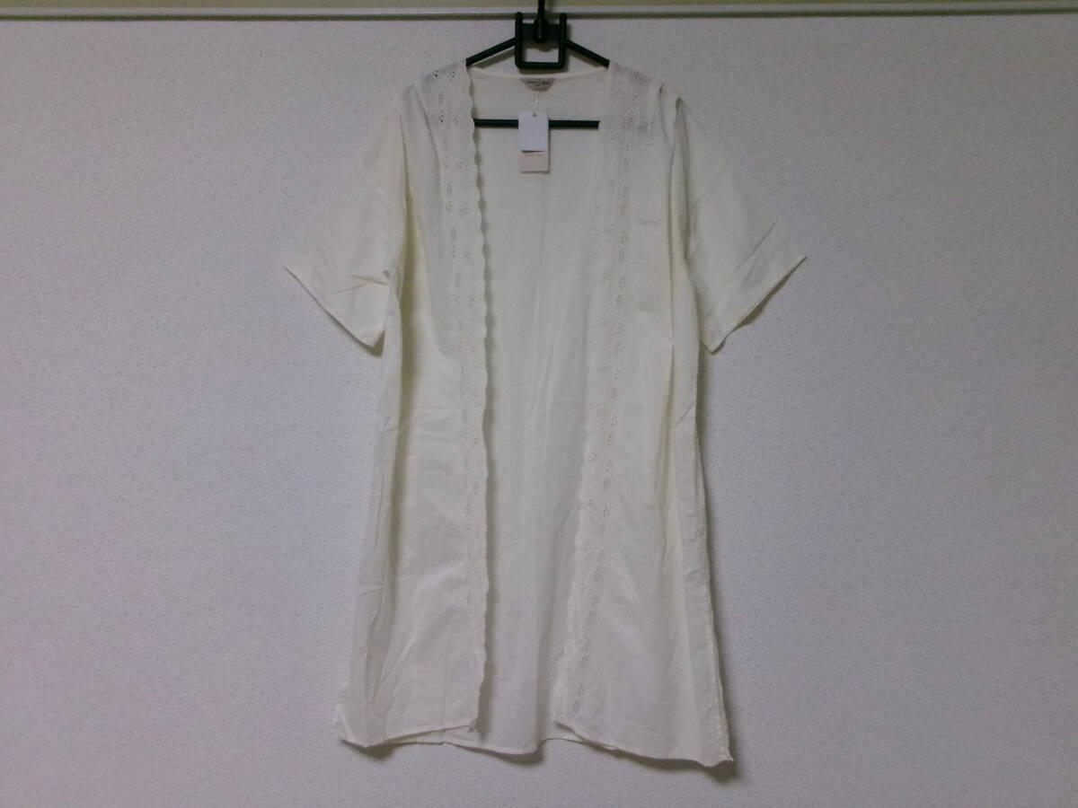 - Samansa Mos2サマンサモスモスSM2☆生成りベージュ☆アイボリーの半袖ロング丈カーディガン☆刺繍ロングガウン☆透かし刺繍☆Fタグ付き新品