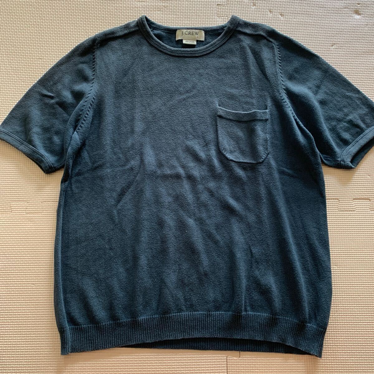 - 00s【J.Crew】ジェイクルー コットンニット ポケット半袖Tシャツ Mサイズ サマーニット ネイビー グレー