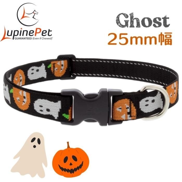 - ワンタッチ首輪・Mサイズ・25mm幅 ゴースト柄 40-71cm LUPINEルパイン アメリカ製 軽量 丈夫 中型犬・大型犬