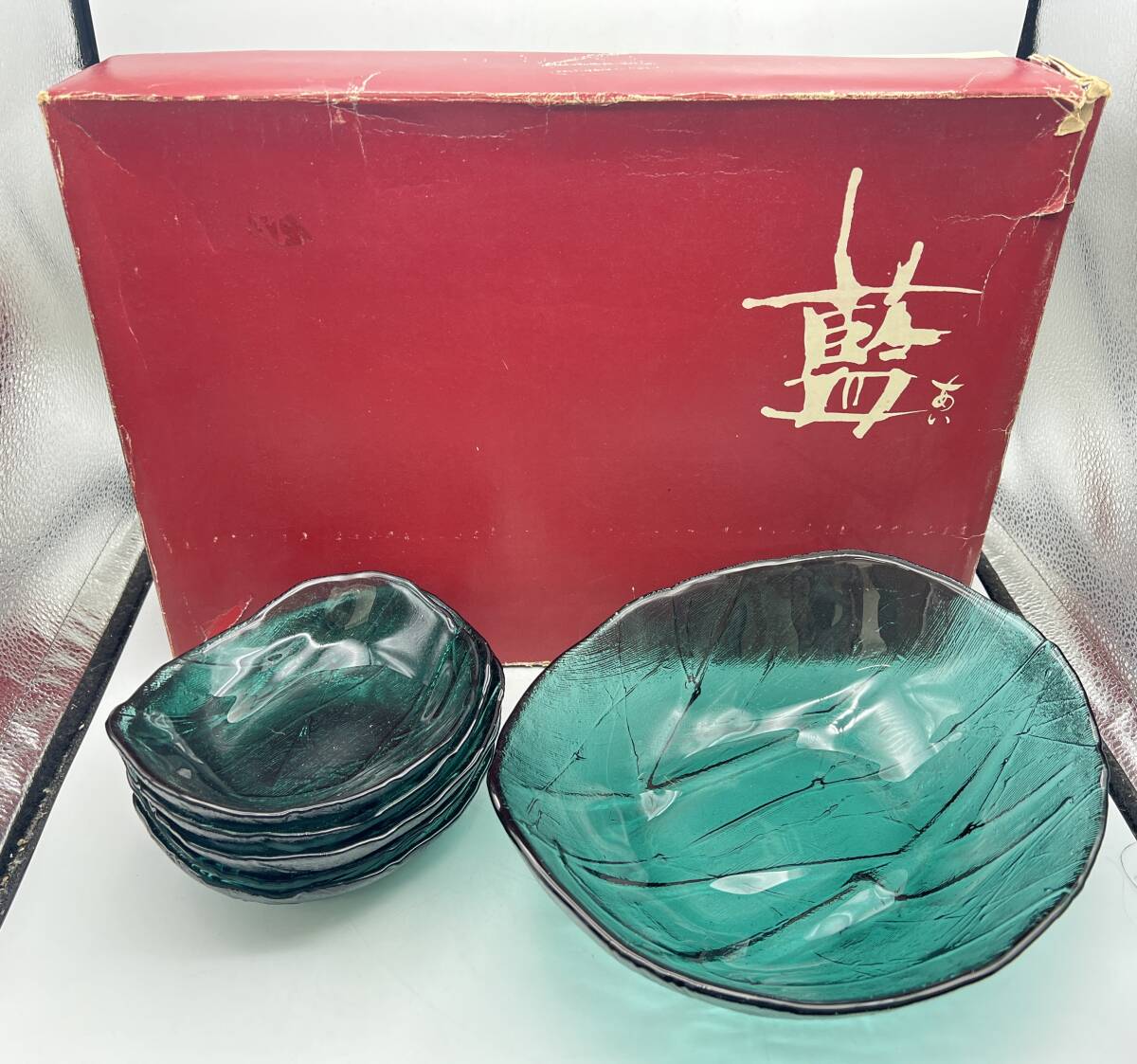 > i3734A 藍 カメイガラス SK-5023 竹ダ円大ボール 小ボール ボウル 食器 お皿 グリーンプレートセット