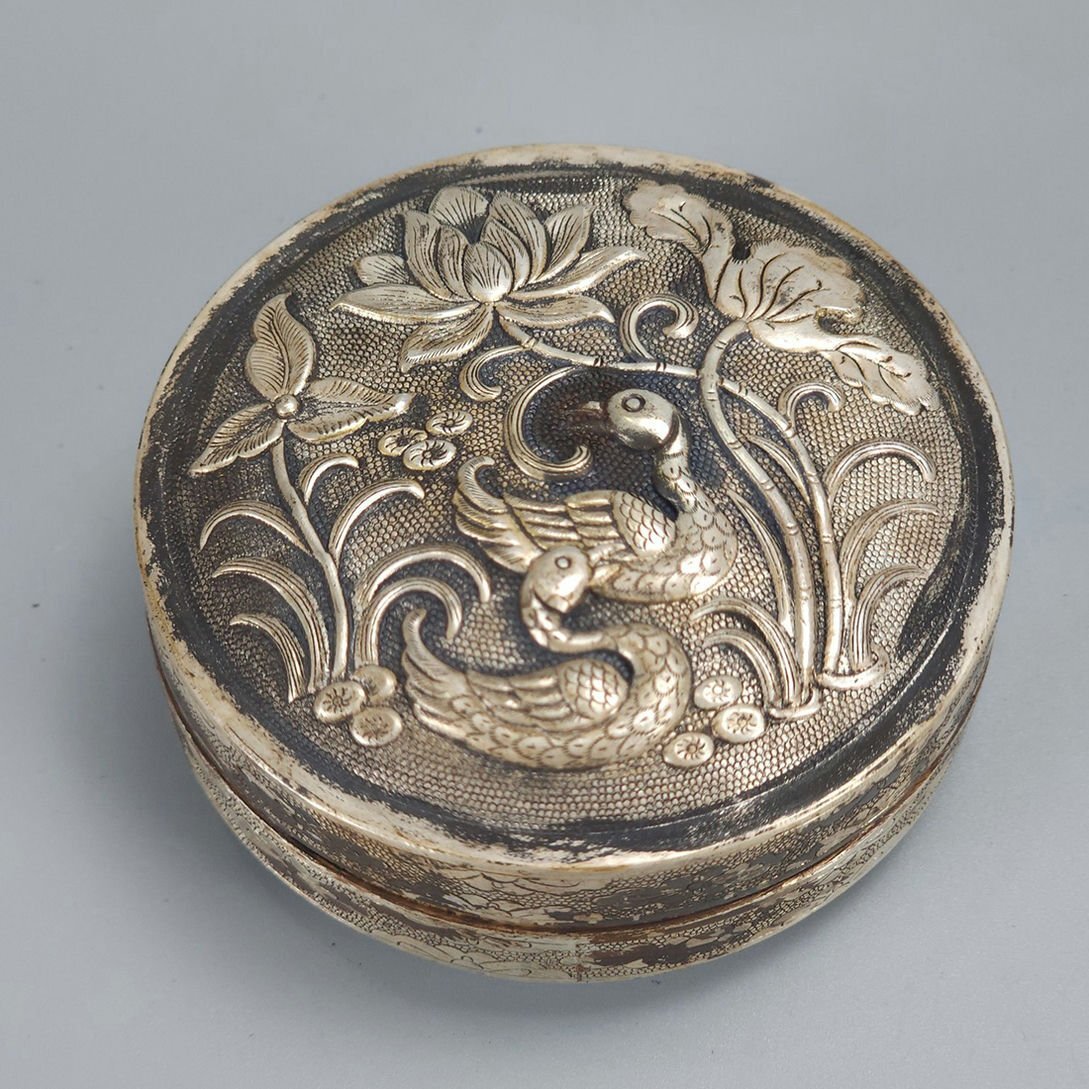 - ◆羽彰・古美術◆Y4163清時代 純銀盒 細密細工★古置物★古賞物★古擺件★蒐集家放出★唐物