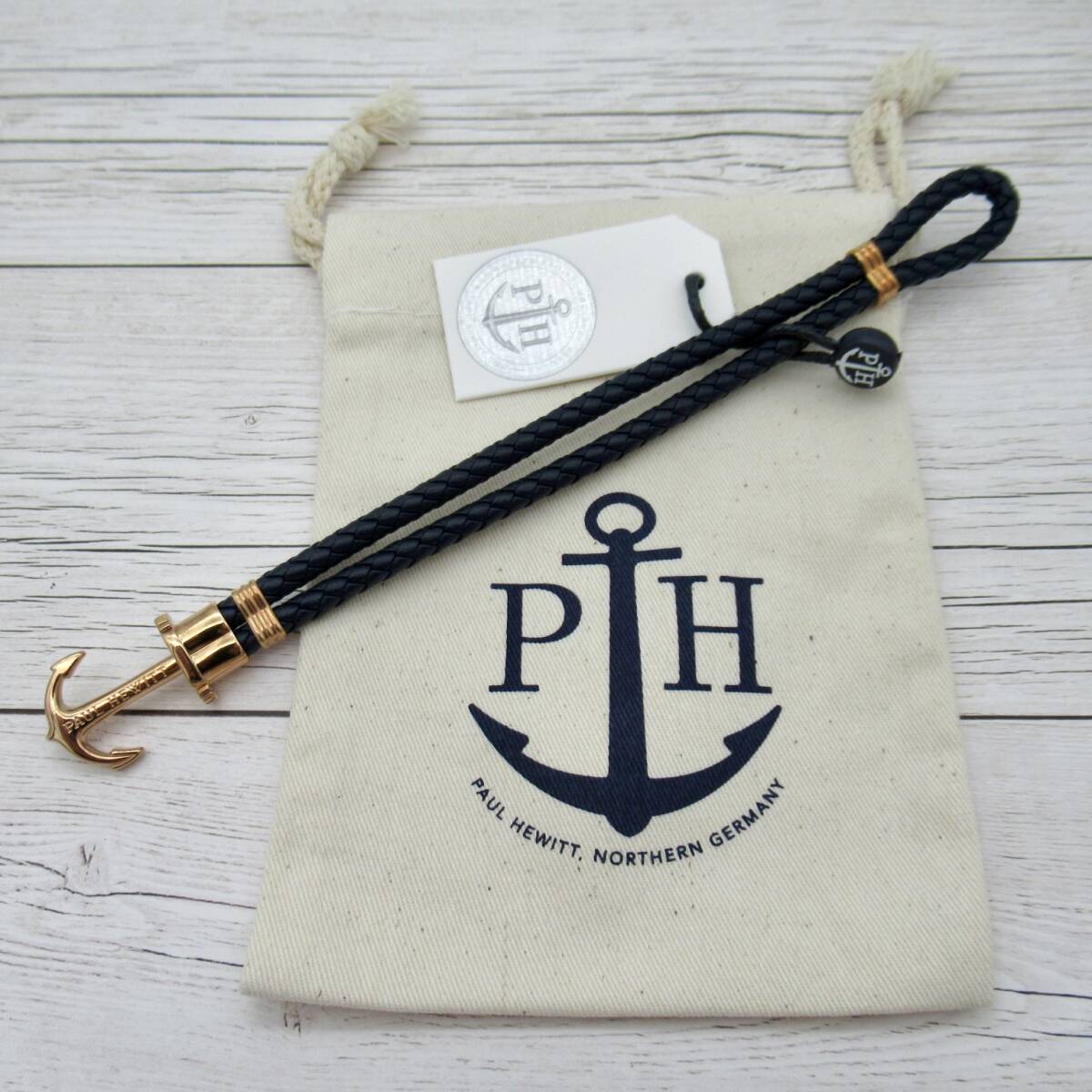 - 【新品未使用】Paul Hewitt ポールヒューイット Sサイズ ネイビー ゴールド アンカー ブレスレット レザー 革 ステンレス 錨 アクセサリー