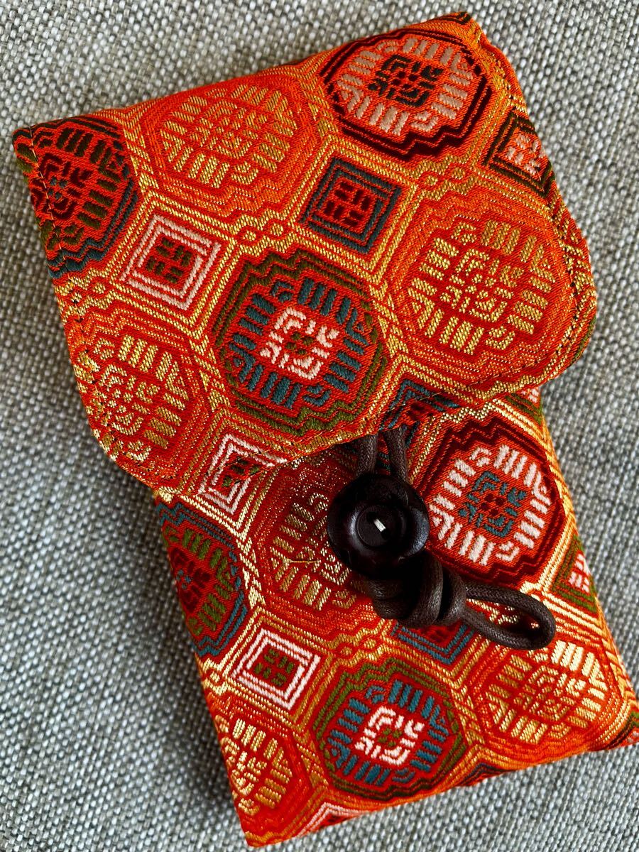 - *am*万年筆・ペンケース 金襴/橙色紋章柄@3本さし@ハンドメイド