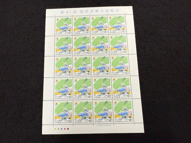 - 94、日本切手 第47回 国民体育大会 41円×20枚 シート 未使用