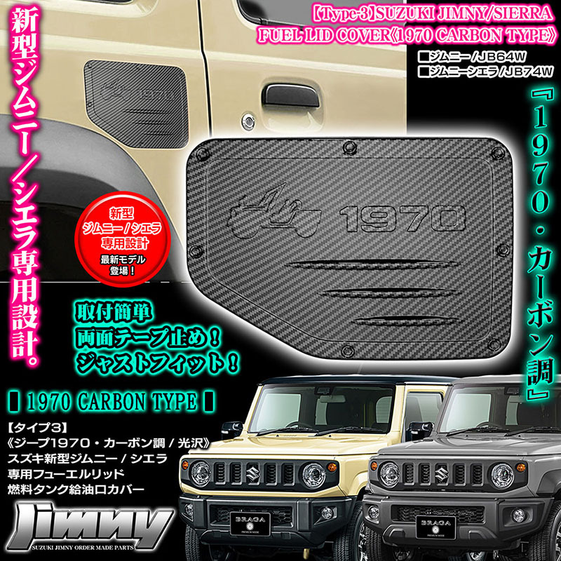 > タイプ3/スズキJB64W/74W新型ジムニー・シエラ専用/ABS製フューエルリッド/燃料タンク 給油口 カバー[ジープ1970/カーボン調]ブラガ