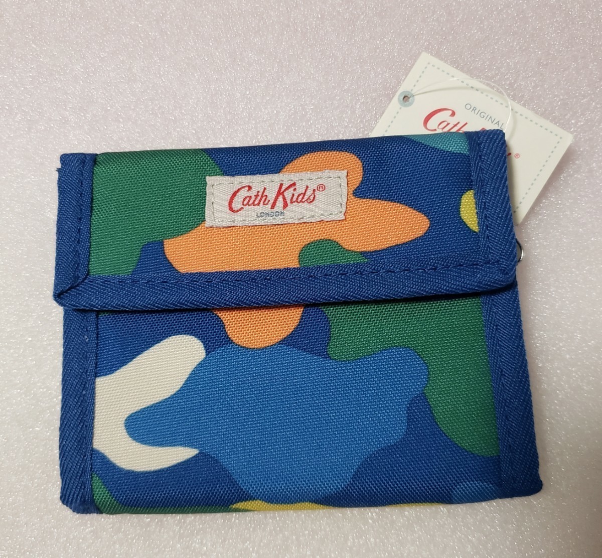 - 未使用(画像3擦り傷有) キャスキッドソン CathKidston キッズフォールディングウォレット カモフラージュ ブルー 子供用 折り財布 カモフラ