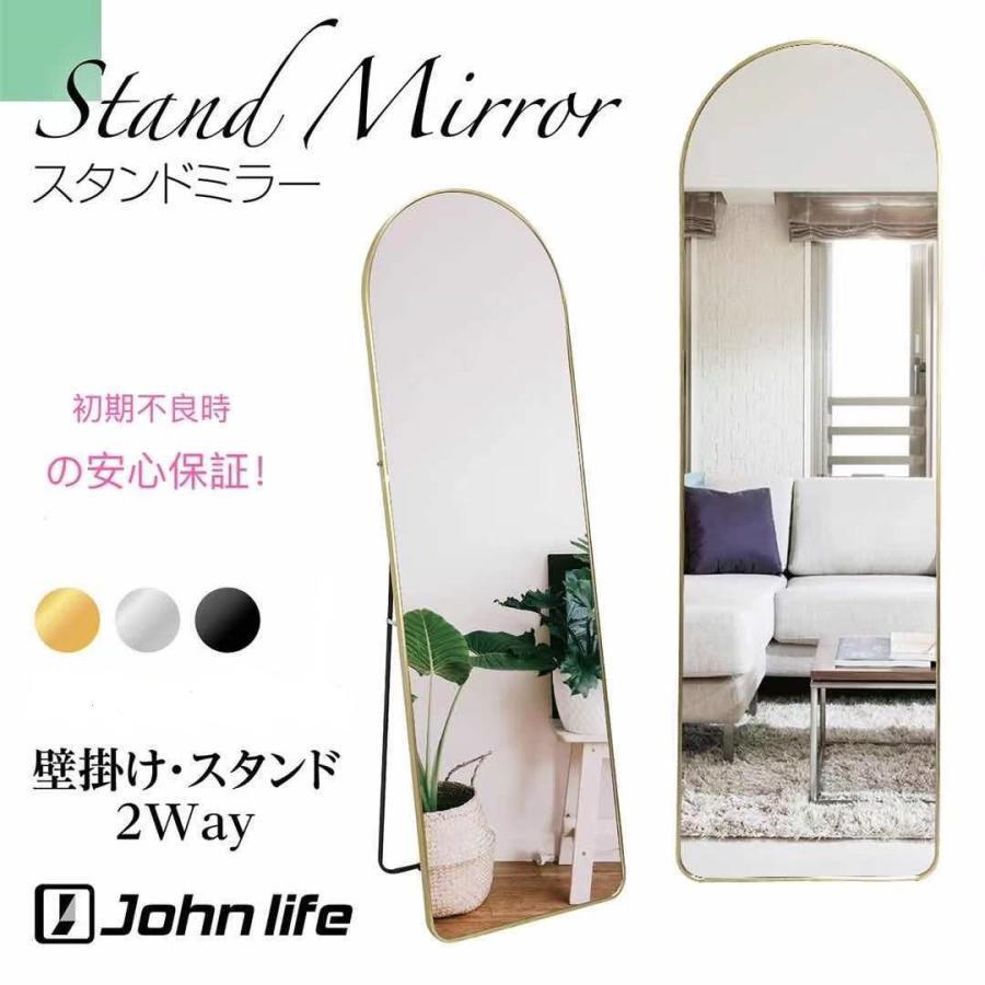 > 全身鏡 姿見鏡 アーチ 玄関鏡 壁掛け 鏡 974スタンドミラー アーチ型ミラー 飛散防止加工(160cmx50cm) シルバー