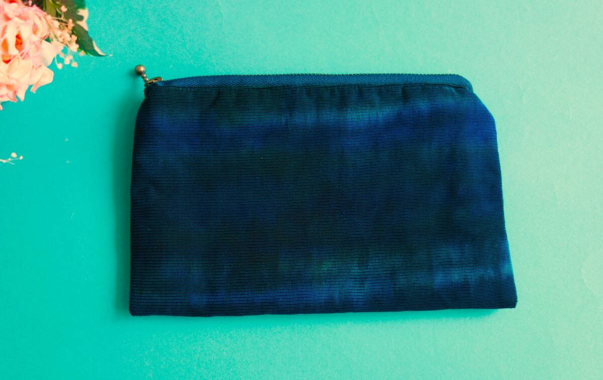 - ■きものリメイク 青緑グラデーション色 ポーチ