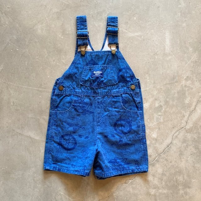 > 【Kids 4T】USA製 OSHKOSH コットン オーバーオール サロペット 青 総柄■ビンテージ アメリカ古着 80s-90s オシュコシュ 子供服 キッズ