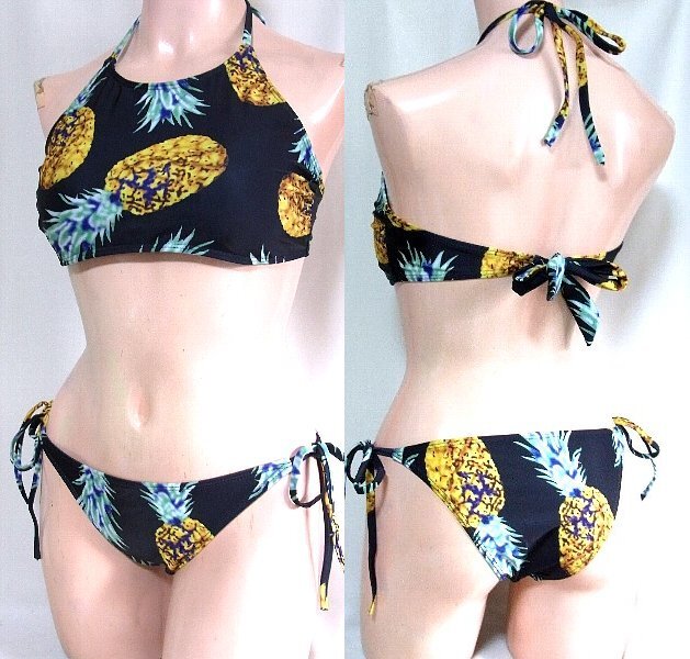 - ★☆パイナップル柄入り黒セパレートひもビキニ水着☆★