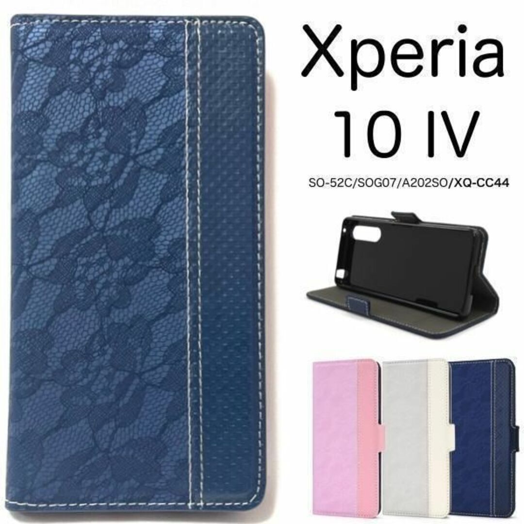 - Xperia 10 IV SO-52C/SOG07 レース柄 手帳型ケース/エクスペリア スマホケース