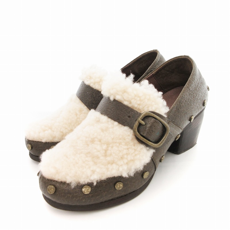 - ラボキゴシ RABOKIGOSHI パンプス ボア ブロックヒール 23.5cm アイボリー カーキ /UO レディース