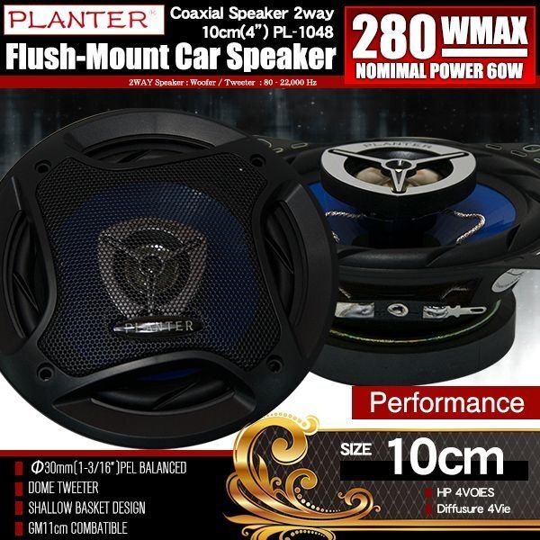- カースピーカー 10cm 280W PL-1048 基本モデル 自動車用スピーカー オーディオ