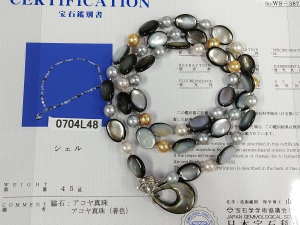 - 0704L48 本真珠 あこや シェル ネックレス 宝石鑑別書付 約45g