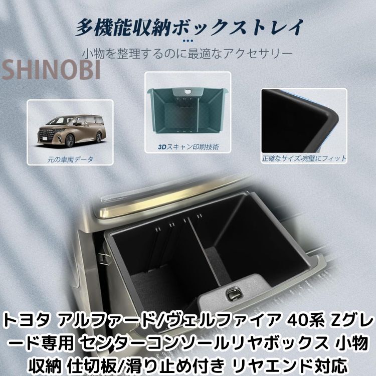 > トヨタ アルファード/ヴェルファイア 40系 Zグレード専用 センターコンソールリヤボックス 小物収納 仕切板/滑り止め付き リヤエンド対応
