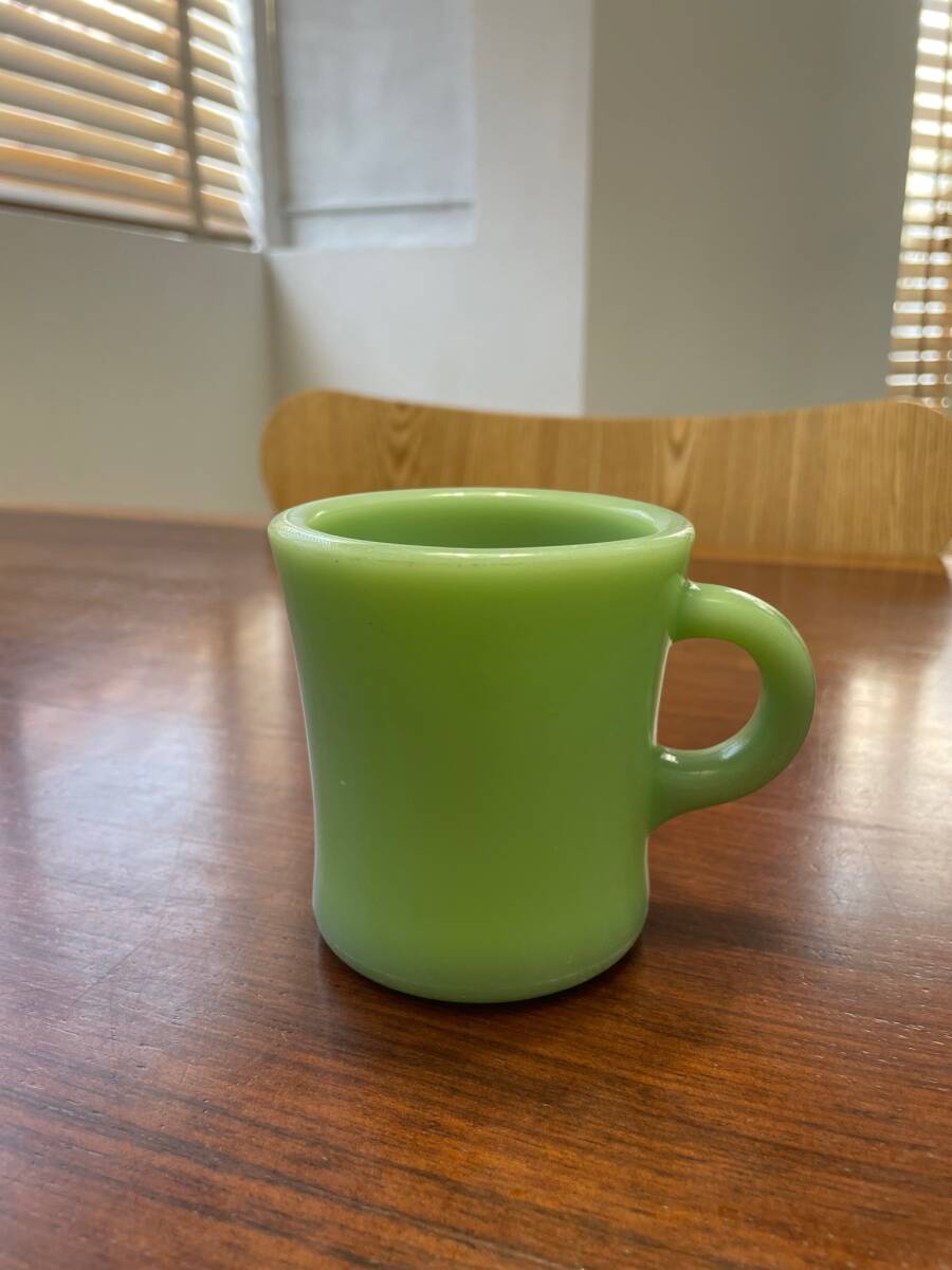 - ファイヤーキング ジェダイ Dハンドルマグ「OVEN Fire-King WARE」刻印(希少刻印)ヴィンテージ 良品(内側底に傷あり)