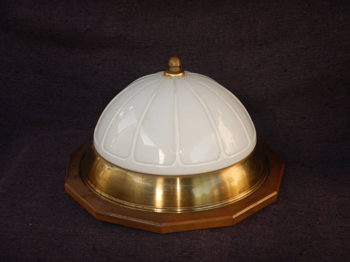 - レトロ 船室 ランプ 菊型 ガラスシェード 室内照明 壁掛けランプ 天井ランプ 船室ライト ビンテージ 乳白色ガラス シーリング 通電確認済み
