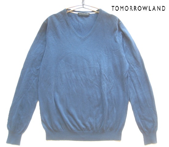 - 美品!!トゥモローランド TOMORROWLAND*Tricot 美シルエット Vネック薄手コットンニットセーター L ネイビー 紺