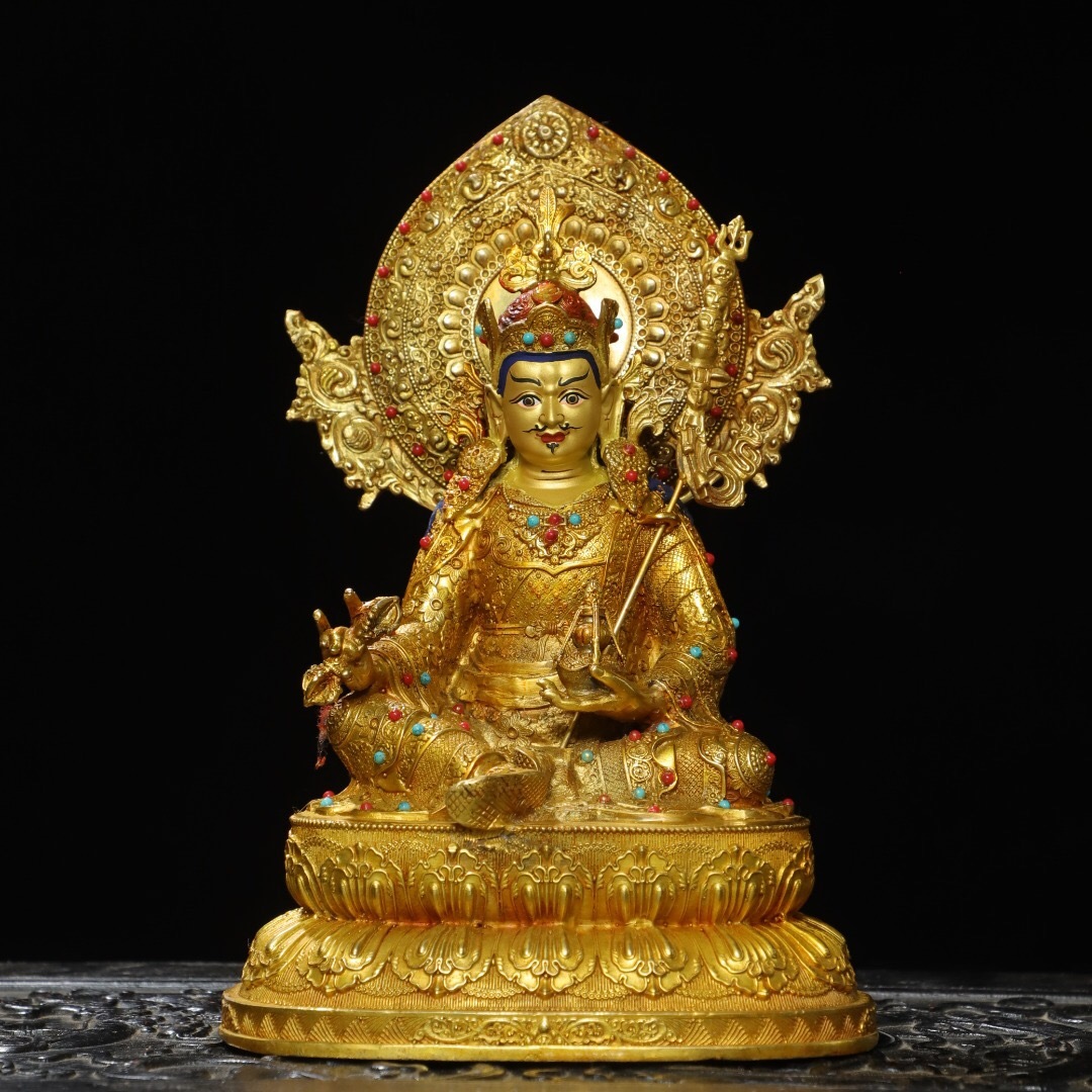 - ▽鴻▽ 銅製 塗金 蓮花生仏 仏像 宗教 仏教古美術 供養品 古賞物 古董品 時代物 稀少珍品 中国古玩 中国古美術