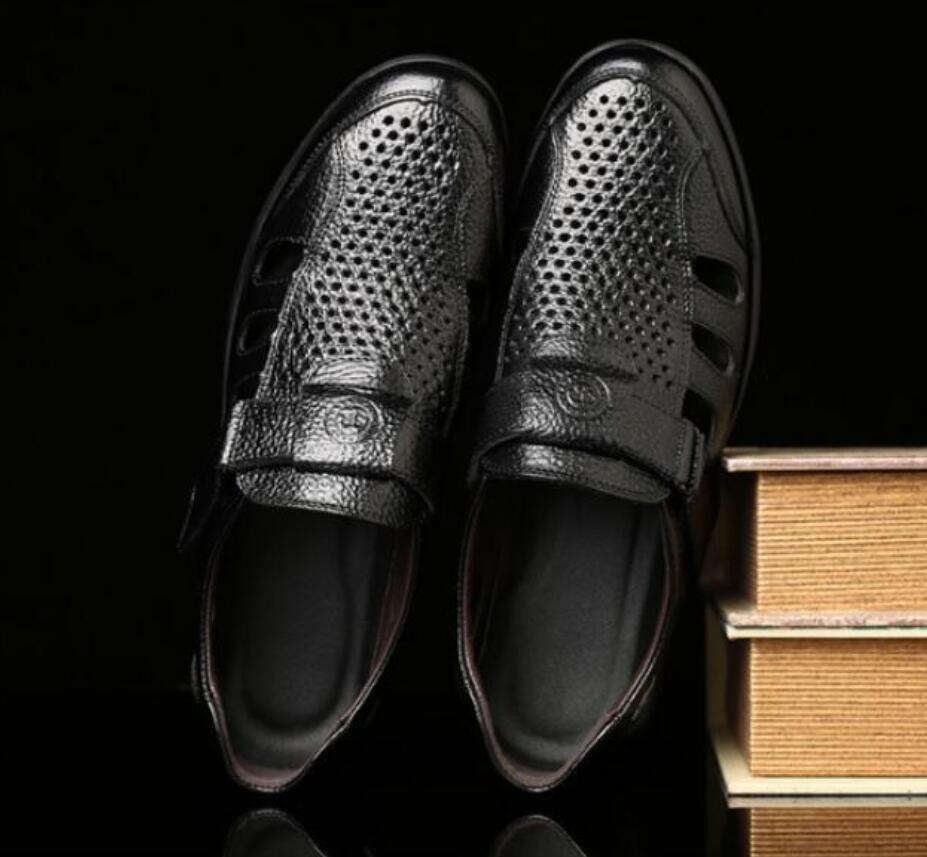 - 人気推薦/上質牛革サンダル メンズ 爽やか レザーサンダル メンズ靴 アウトドア 軽量 快適 夏スニーカーメッシュ滑り止め 川遊び/ブラック
