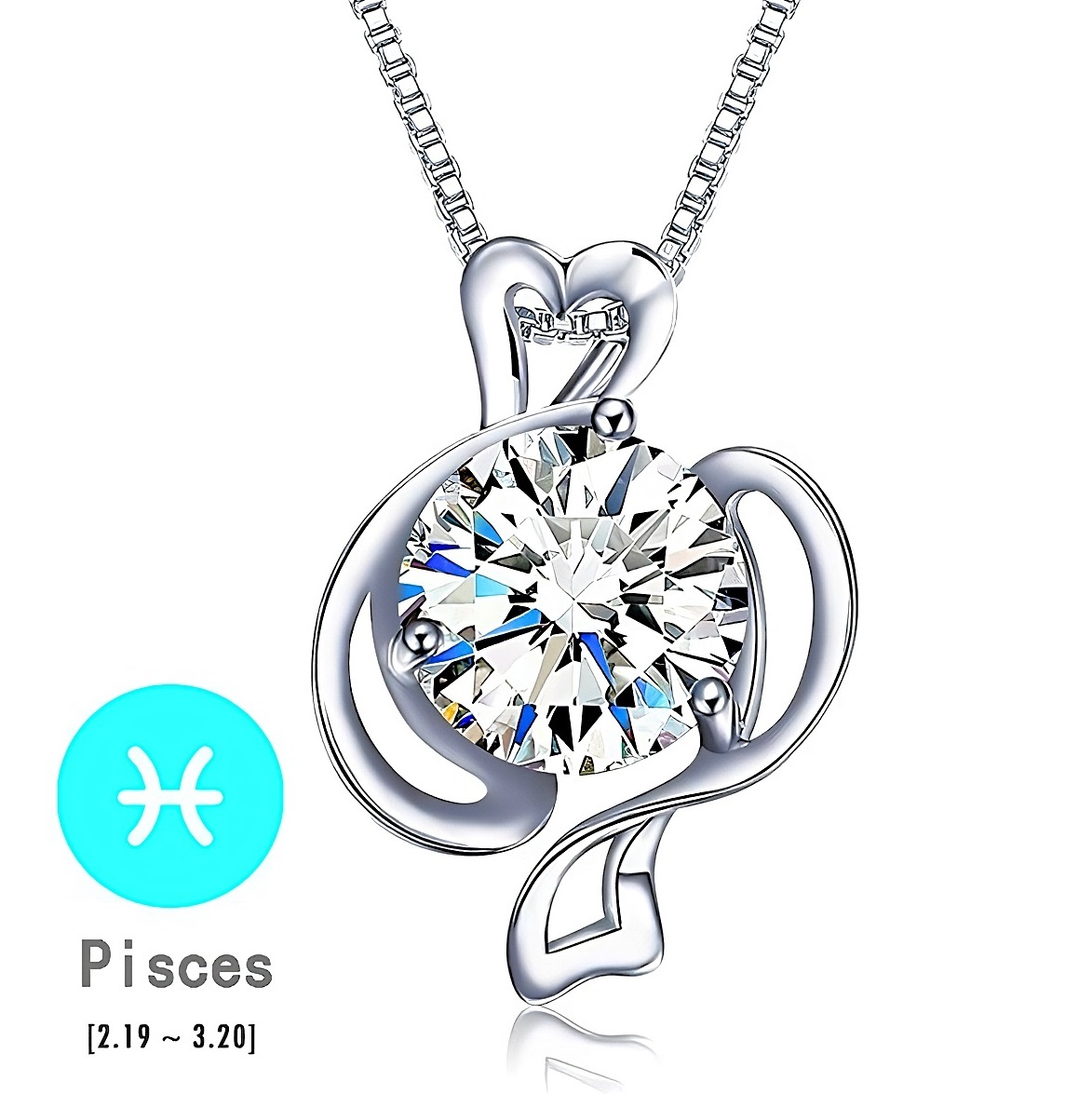 > 新品★送料無料★うお座2-3月ダイヤモンド星座ピスケス プラチナ仕上925シルバーネックレス誕生日プレゼント旅行連休夏ギフト国内発送