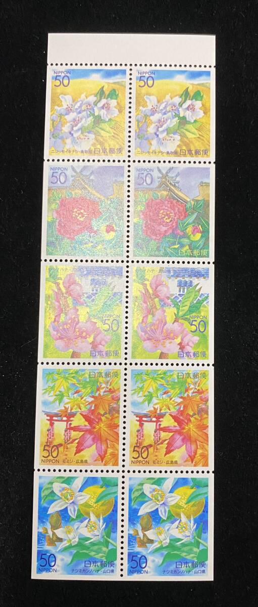 - ふるさと切手 中国地方の自然~花 (鳥取県 島根県 岡山県 広島県 山口県) 50円 ペーン 記念切手シート