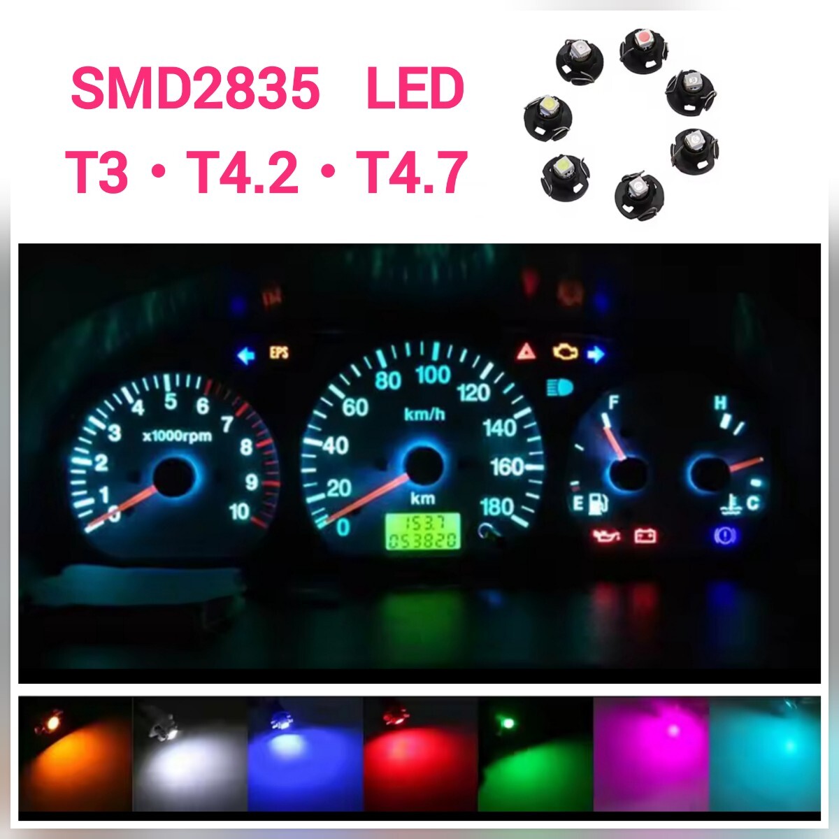 > 拡散LED SMD2835 全面発光 T4.2・T4.7・T3 1個 マイクロ電球■白赤青ピンクパープル緑アンバー 水色