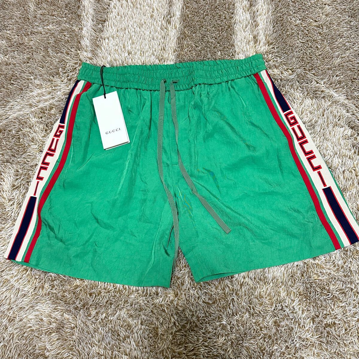 - 【タグ付き】GUCCI ショートパンツ グリーン 緑 トラックパンツ ライン メンズ グッチ ハーフパンツ 半ズボン ライン ストライプ 短パン