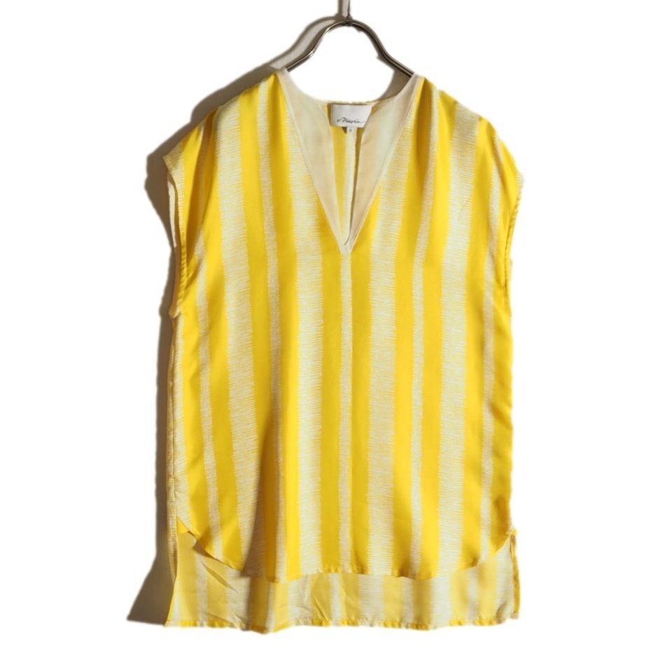 > U6032f6 ▼3.1 phillip lim フィリップリム▼ シルクノースリーブブラウス イエロー ストライプ 0 / レディース プルオーバー 春夏