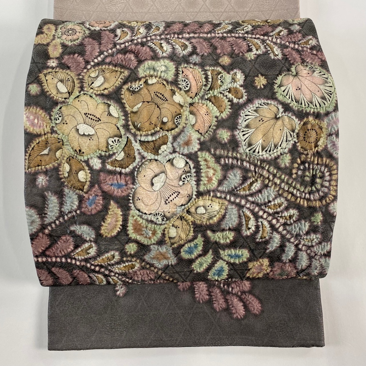 - 袋帯 美品 名品 辻が花柄 銀糸 灰紫 お太鼓柄 正絹 【中古】