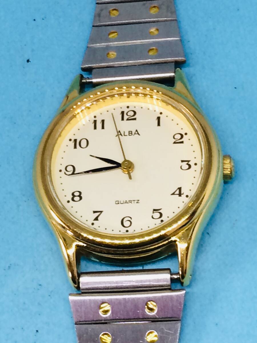 - (h42)セイコー(*'▽')SEIKO・ALBA・V811(電池交換済み)ゴールド・レディス腕時計USED(送料全国一律185円)素敵な時計です。