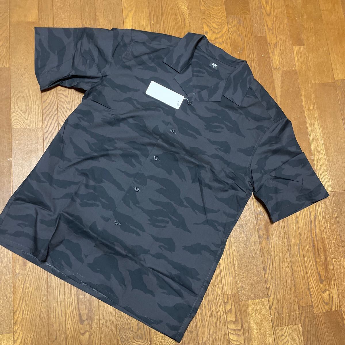 - 新品♪ユニクロ≪UNIQLO≫♪プリントオープンカラーシャツ ♪ダークグレー♪Mサイズ