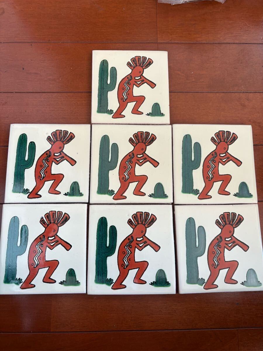 - 新品未使用品#10㎝#正方形#7枚セット#アンティークタイルセット#カクタスと先住民#DIY#室内#屋外#ハンドメイド#サボテン#限定#
