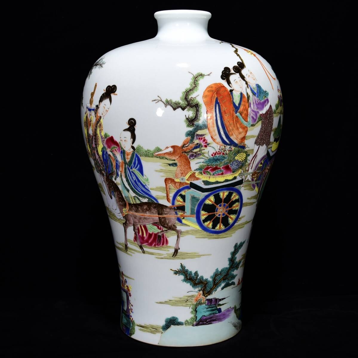 - ■LH206■大清雍正年制銘 粉彩麻菇献寿紋梅瓶 瓢箪瓶 時代物 古玩 唐物 古陶磁器■