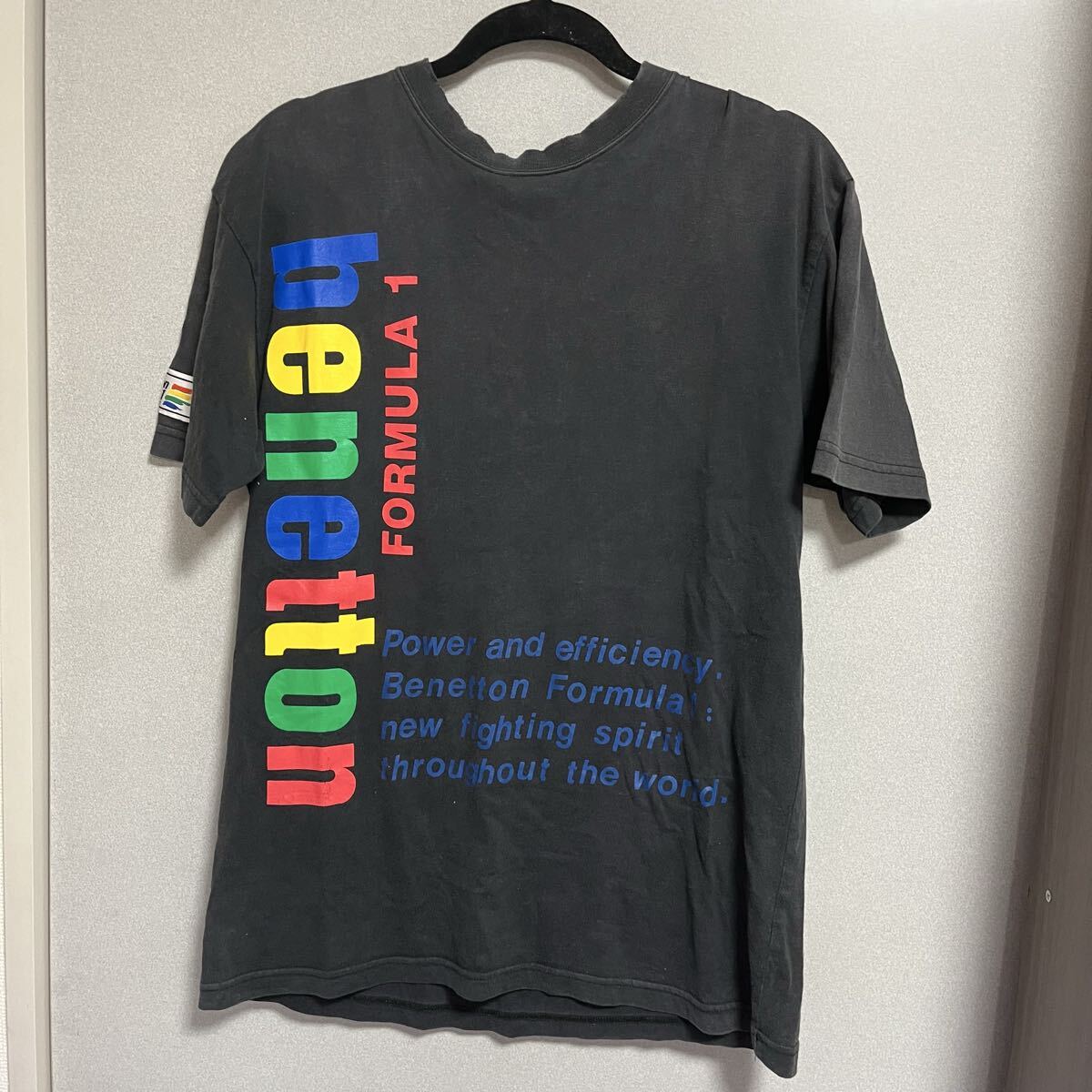 > 【希少】ベネトン Tシャツ 黒T Benetton formula1 レトロ レーシング 半袖 Tシャツ 古着 Tee 黒