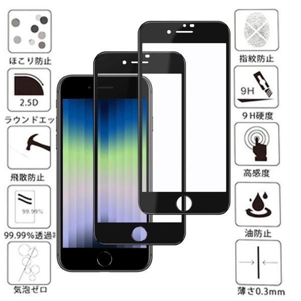 - 2枚入り 黒 iPhone 8Plus / iPhone 7Plus ガラス フィルム アイフォン 画面 保護 頑丈 カバー シート シール スクリーン Glass Film 9H