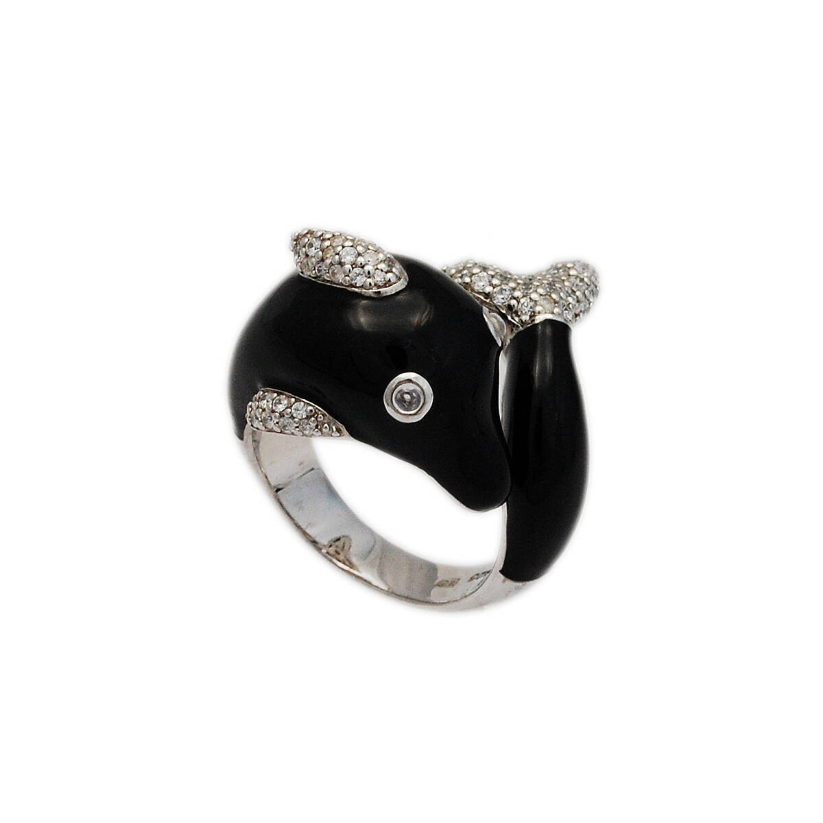 - 16号 ドルフィンブラックエナメルジルコニア925シルバーリング925刻印あり GF-19888BK